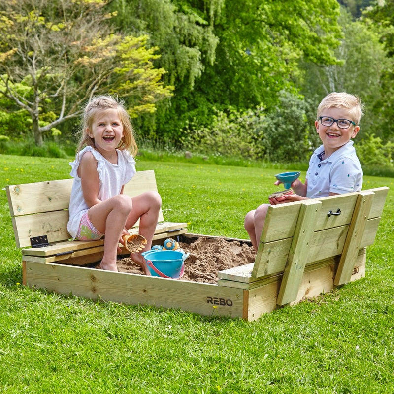 We offer sandpits with folding lids to keep the play sand clean and dry. It's also a handy place to store all those buckets and spades.