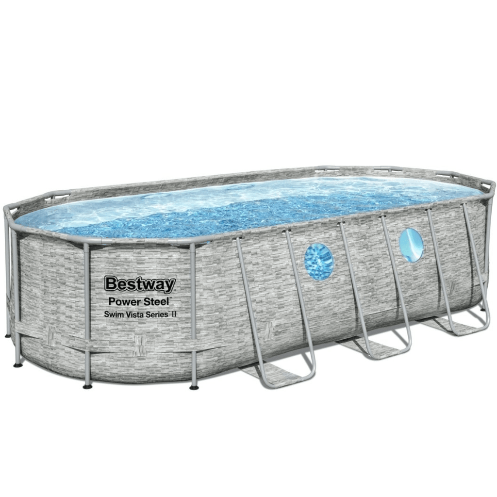 The Oval shape means the pool requires less space and less water, Bestway Power Steel Swim Vista Series™ pools are equipped with Seal & Lock System™ for a safe and secure pipe connection. The ChemConnect™ dispenser maintains and provides clean, healthy pool water, dispenser release provides a stable level of chlorine needed for proper chemical balance