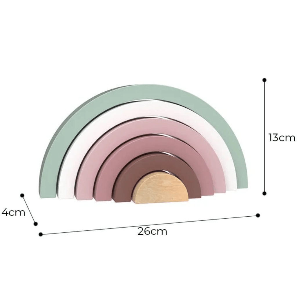 The 6 wooden stacking blocks can be arranged to form a rainbow or mixed and matched to create various shapes and patterns.
