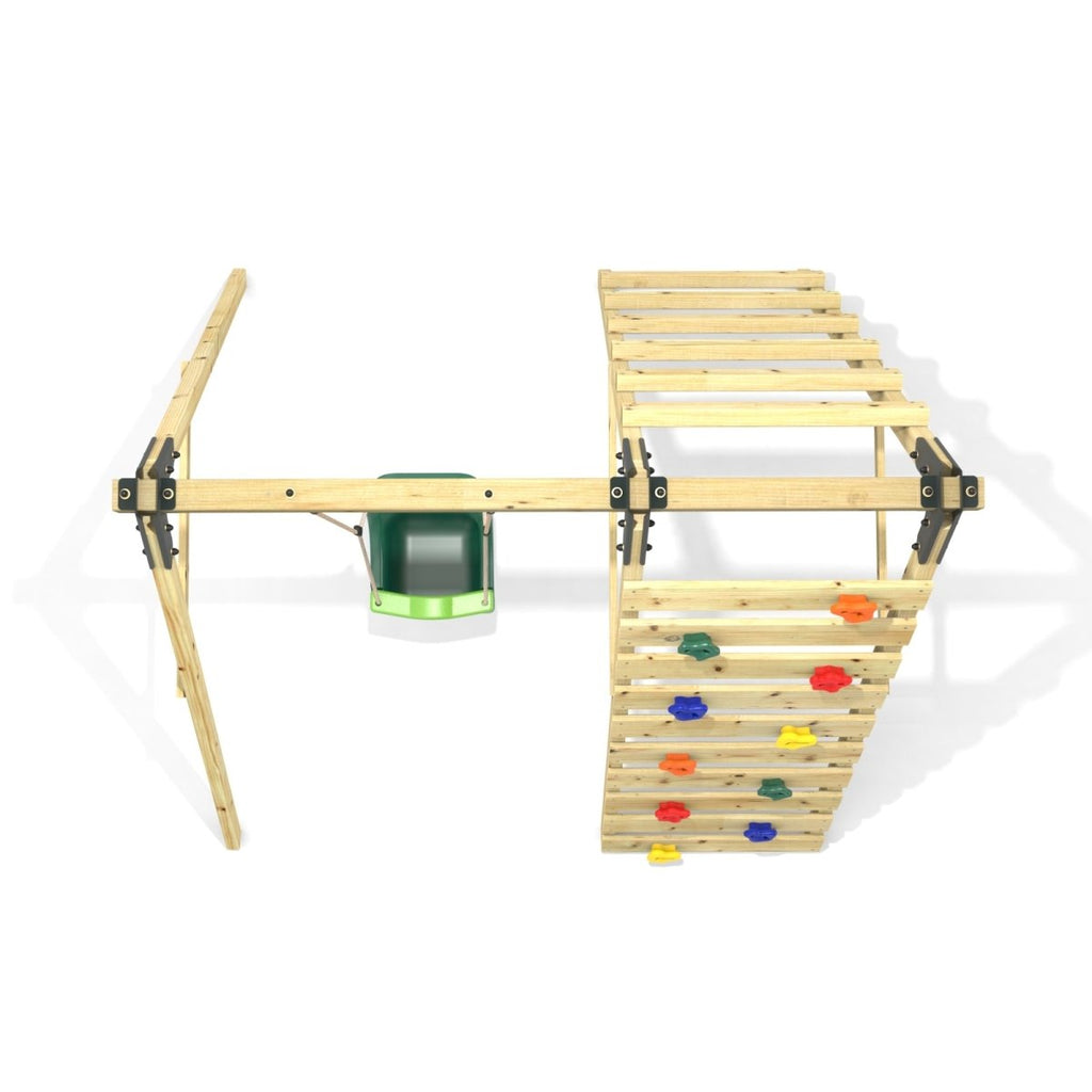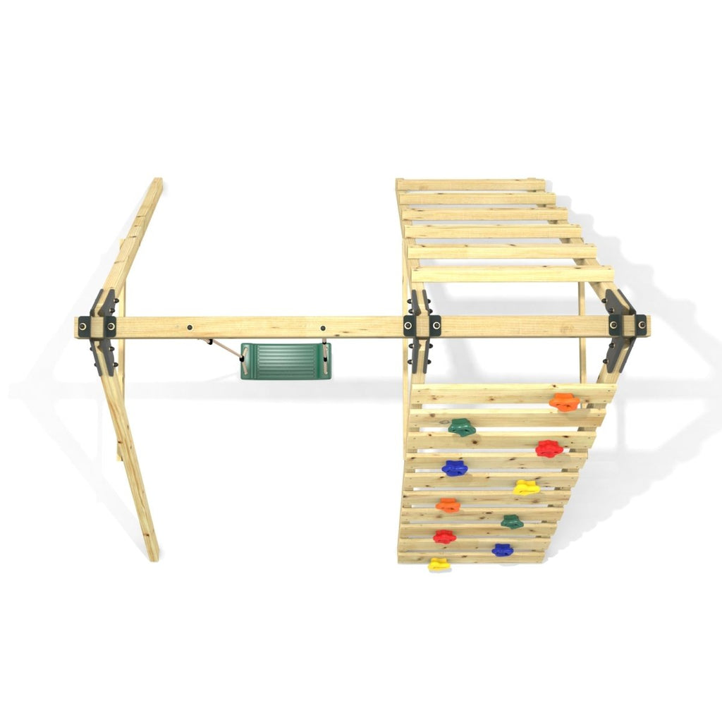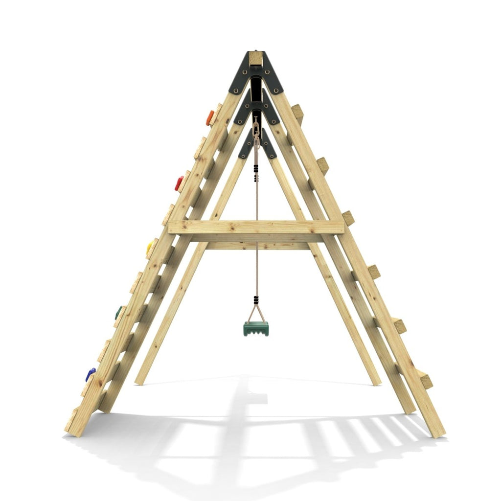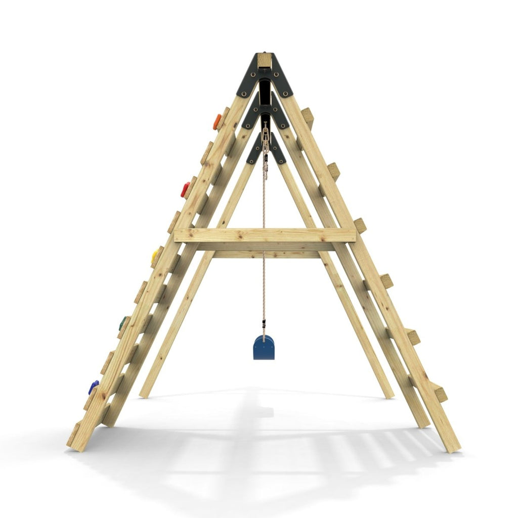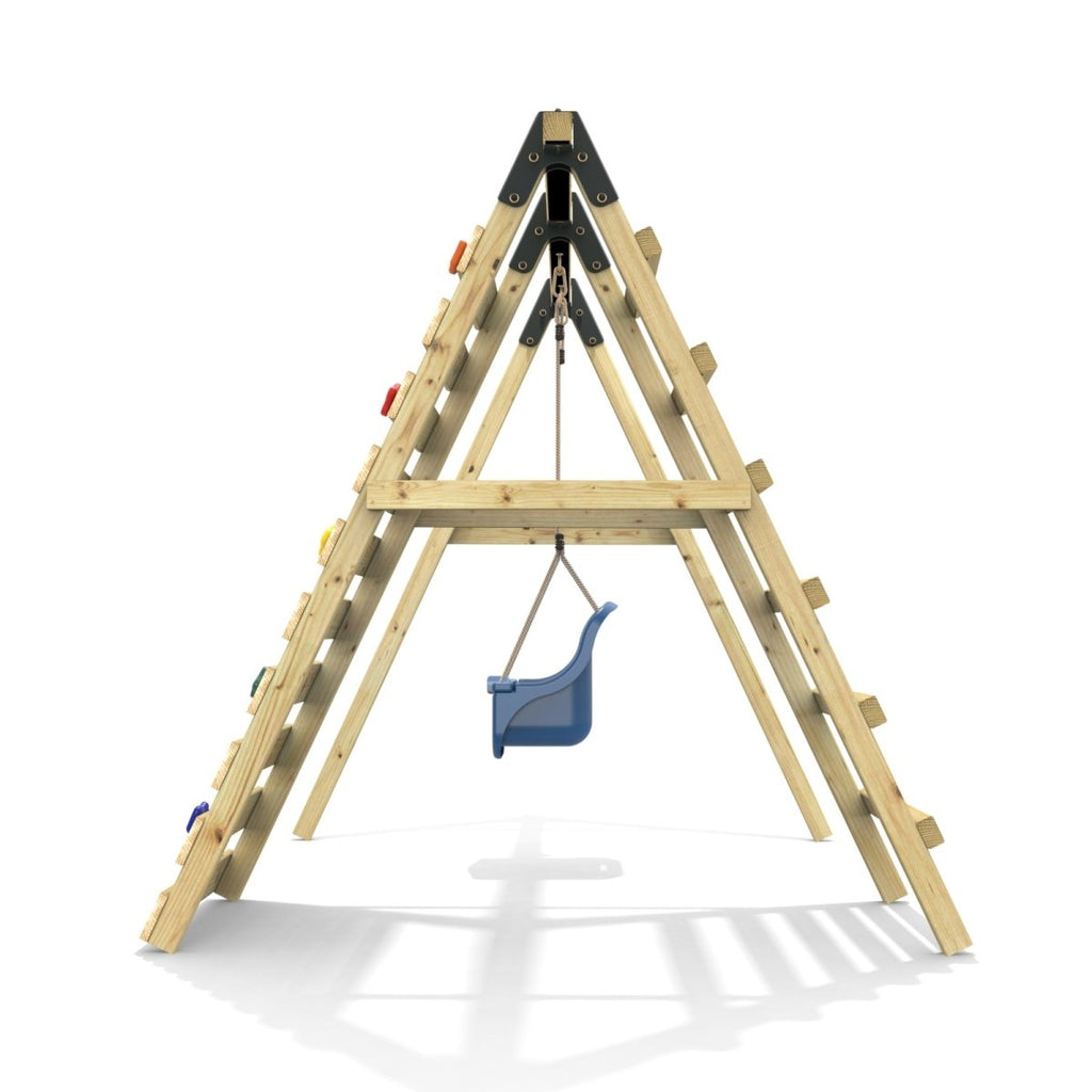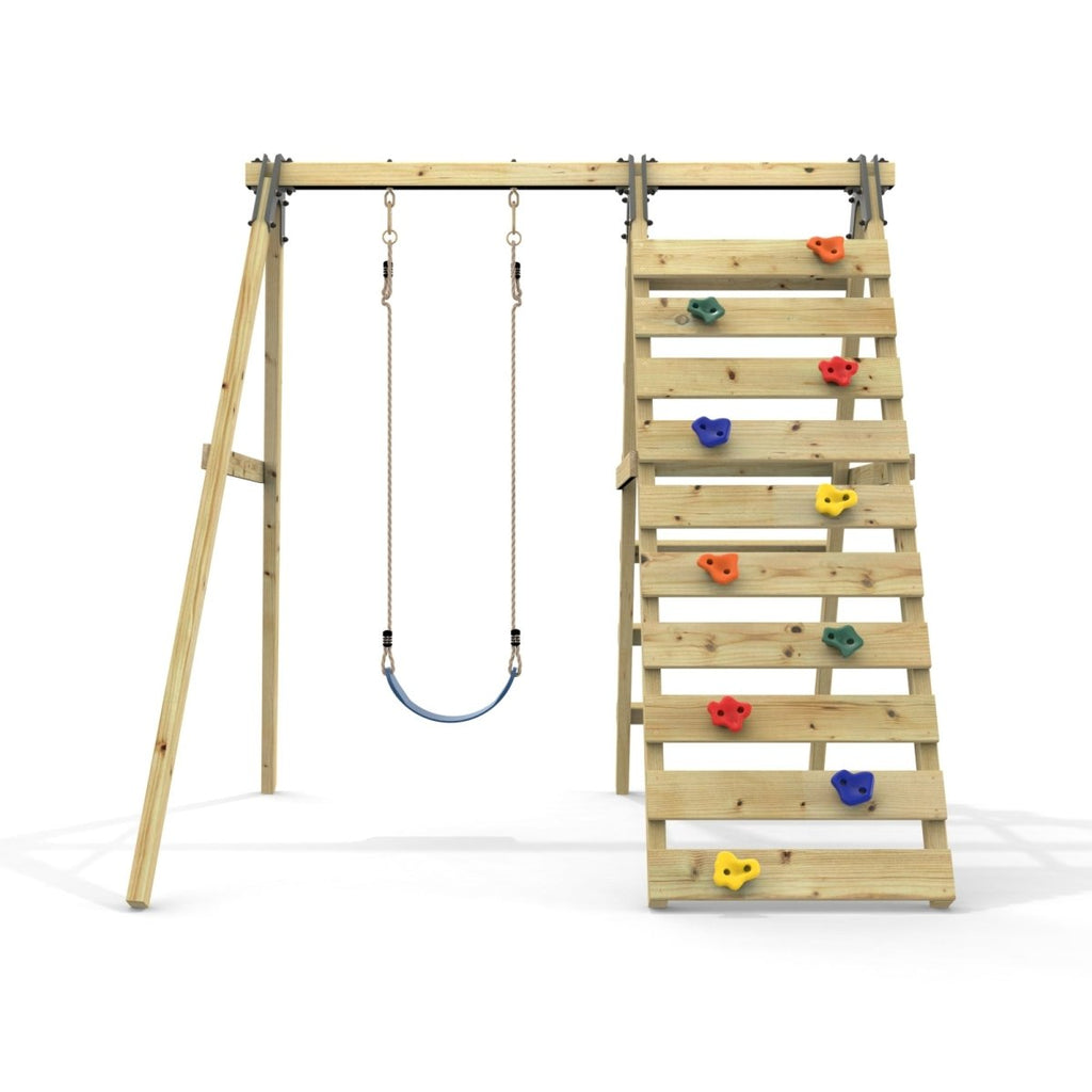 The Lavender single swing with climbing wall is a durable and stylish addition to any garden.