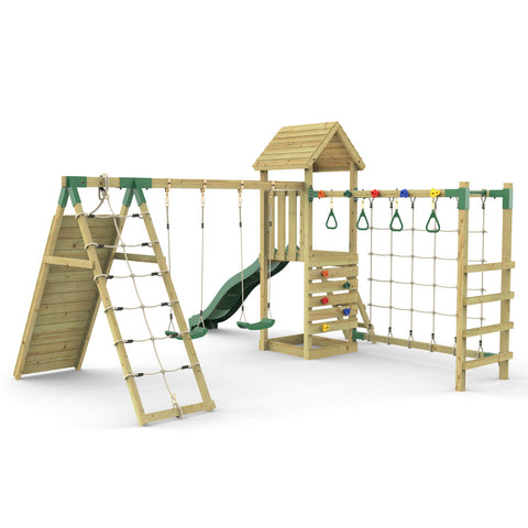 Explore our full range of wooden swing sets, climbing frames with swings, climbing frames with slides, climbing frames with monkey bars and swings with slides to find the perfect outdoor toys for your little ones.