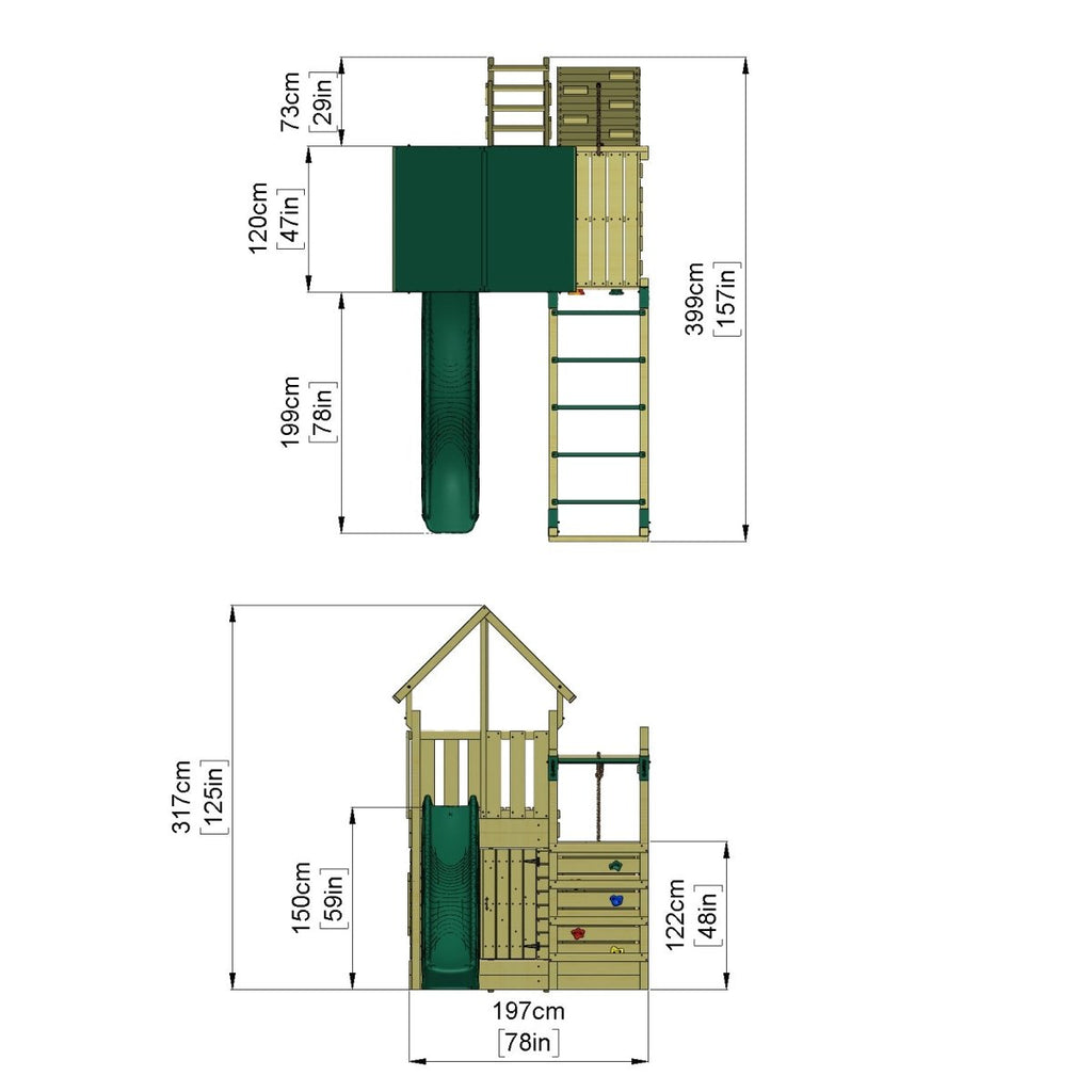 Add a wooden roof for extra charm, attach a swing arm (or a swing arm with a climbing wall!), or extend the adventure with Monkey Bars.