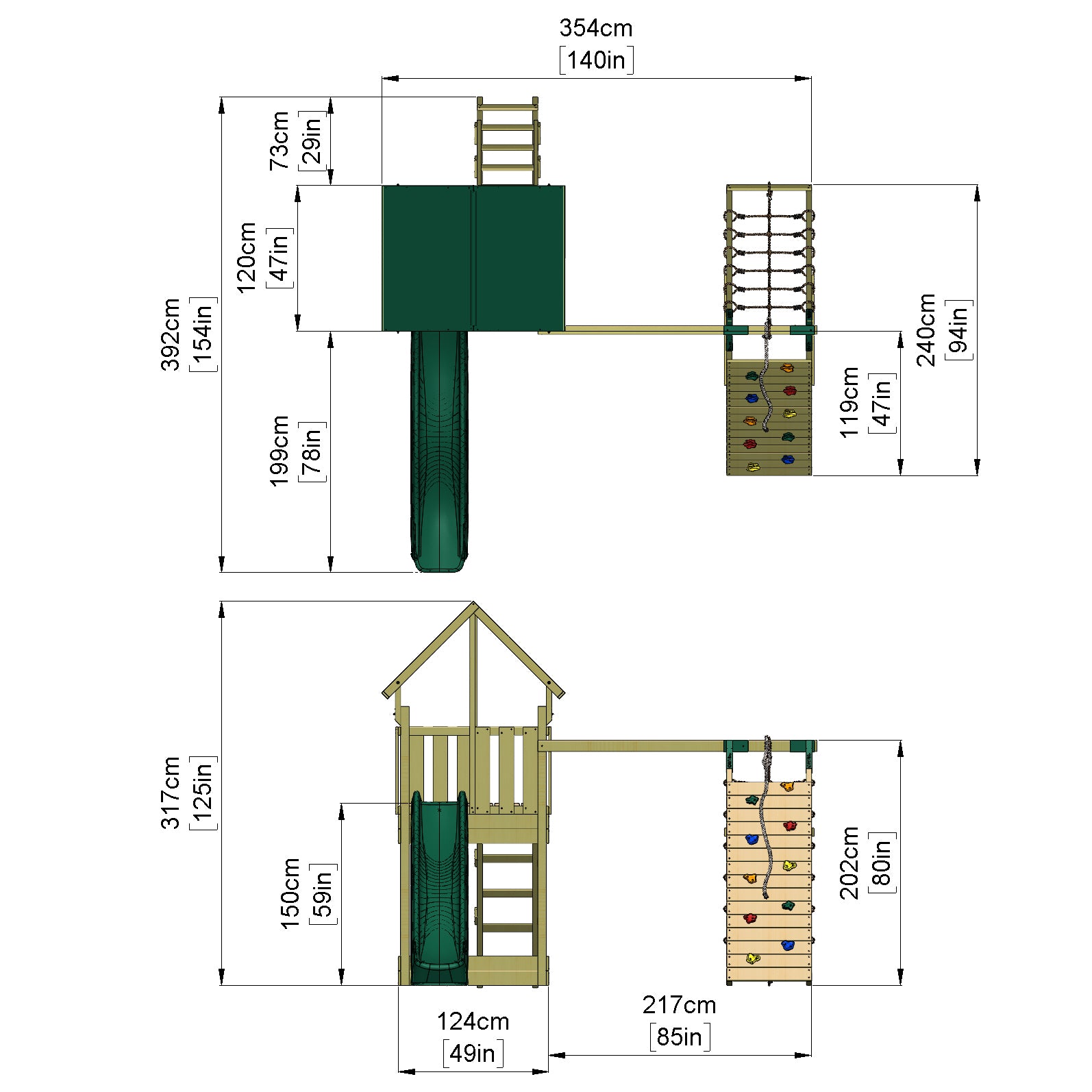 Customise your set by adding a wooden roof, a 1.2m deck with a shop or climbing ramp, or extend the play possibilities with monkey bars—either attached to the lower deck or to a 1.2m step-up deck.