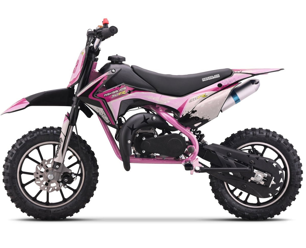 The 49cc petrol 50R is a mini dirt bike that lives up to the pedigree of the Renegade name and we expect it to be just as if not more popular than Quadbike version.