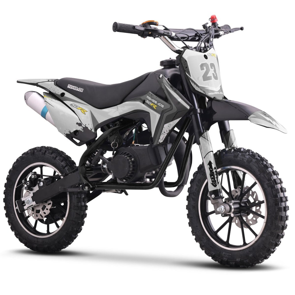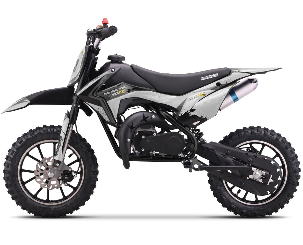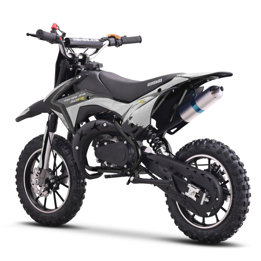 The 49cc petrol 50R is a mini dirt bike that lives up to the pedigree of the Renegade name and we expect it to be just as if not more popular than Quadbike version.
